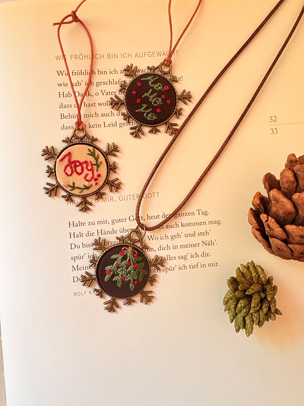 Each piece in the Christmas collection is crafted slowly and with artistry, carrying the warmth of hands and the spirit of the season. Within it you’ll find timeless sheet-music wall art, handmade wreaths, jewelry, keepsake ornaments, and DIY kits that invite you to stitch a little wonder of your own.