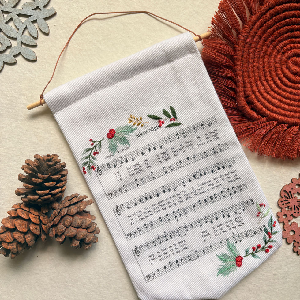 Crafted with utmost attention to detail, this banner captures the nostalgic charm of classic Christmas carols in a timeless design. Its delicate detailing and warm tones make it a lovely addition to your holiday décor or a thoughtful handmade gift for music lovers.